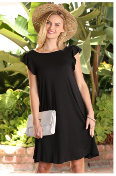 This is a cute Black Dress great for summer time and has ruffles on sleeves, This dress is flowy and is available in plus sizes